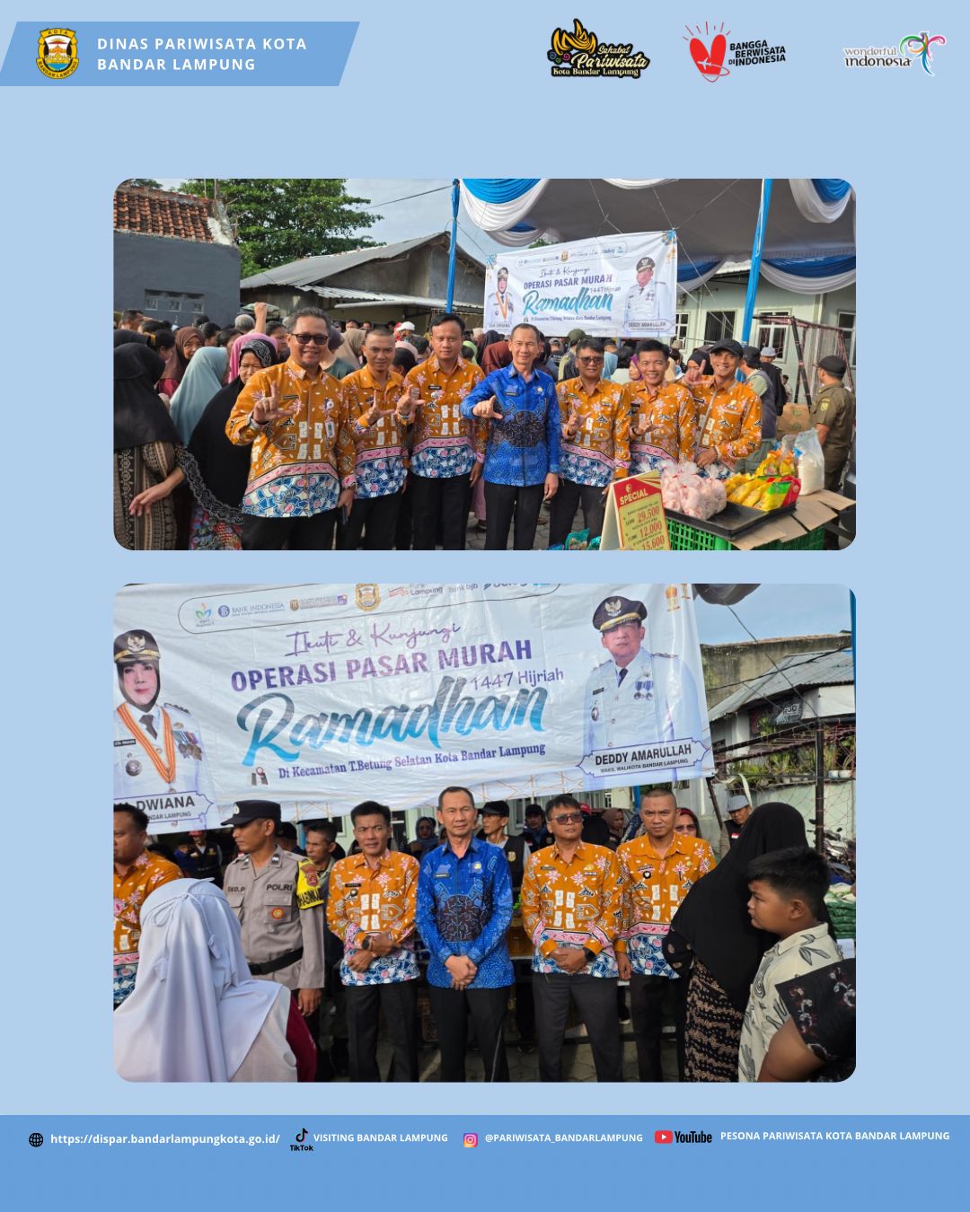 Dalam rangka membantu masyarakat memenuhi kebutuhan pokok selama bulan suci Ramadhan, Kepala Dinas Pariwisata Kota Bandar Lampung turut menghadiri dan meninjau langsung kegiatan pasar murah yang diselenggarakan di halaman Musolah Darul Muslimin Kelurahan Talang kecamatan Teluk Betung Selatan, Kamis (26, Februari 2026).