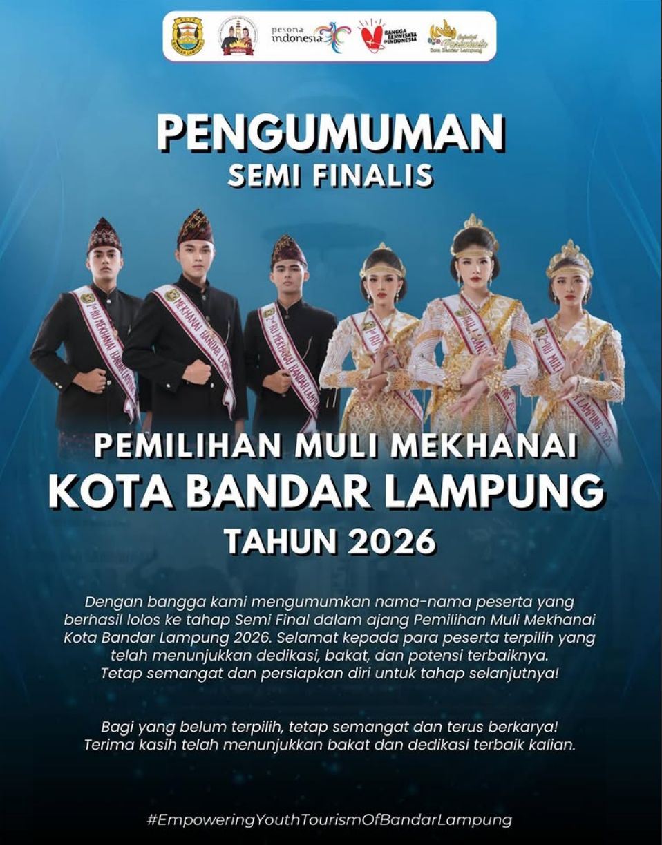 PENGUMUMAN SEMI FINALIST PEMILIHAN MULI MEKHANAI KOTA BANDAR LAMPUNG 2026