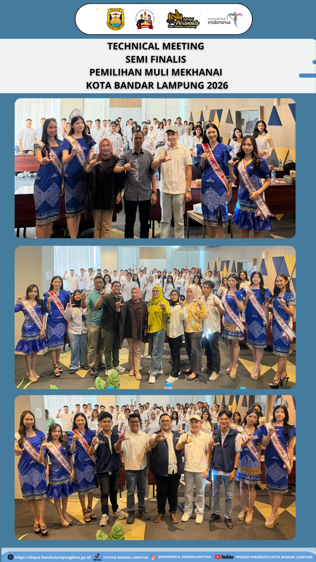 Bandar Lampung, 03 April 2026 - Dinas Pariwisata Kota Bandar Lampung menggelar kegiatan technical meeting bagi para finalis ajang pemilihan Muli Mekhanai Kota Bandar Lampung Tahun 2026. Kegiatan ini berlangsung sebagai bentuk pembekalan awal sebelum para finalis memasuki rangkaian tahapan penilaian berikutnya.