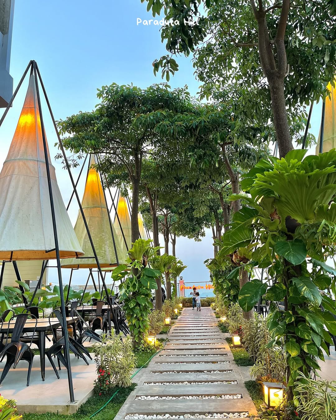 - Tenda kerucut: Kafe dan resto ini memiliki desain unik dengan tenda-tenda kerucut transparan yang estetik.